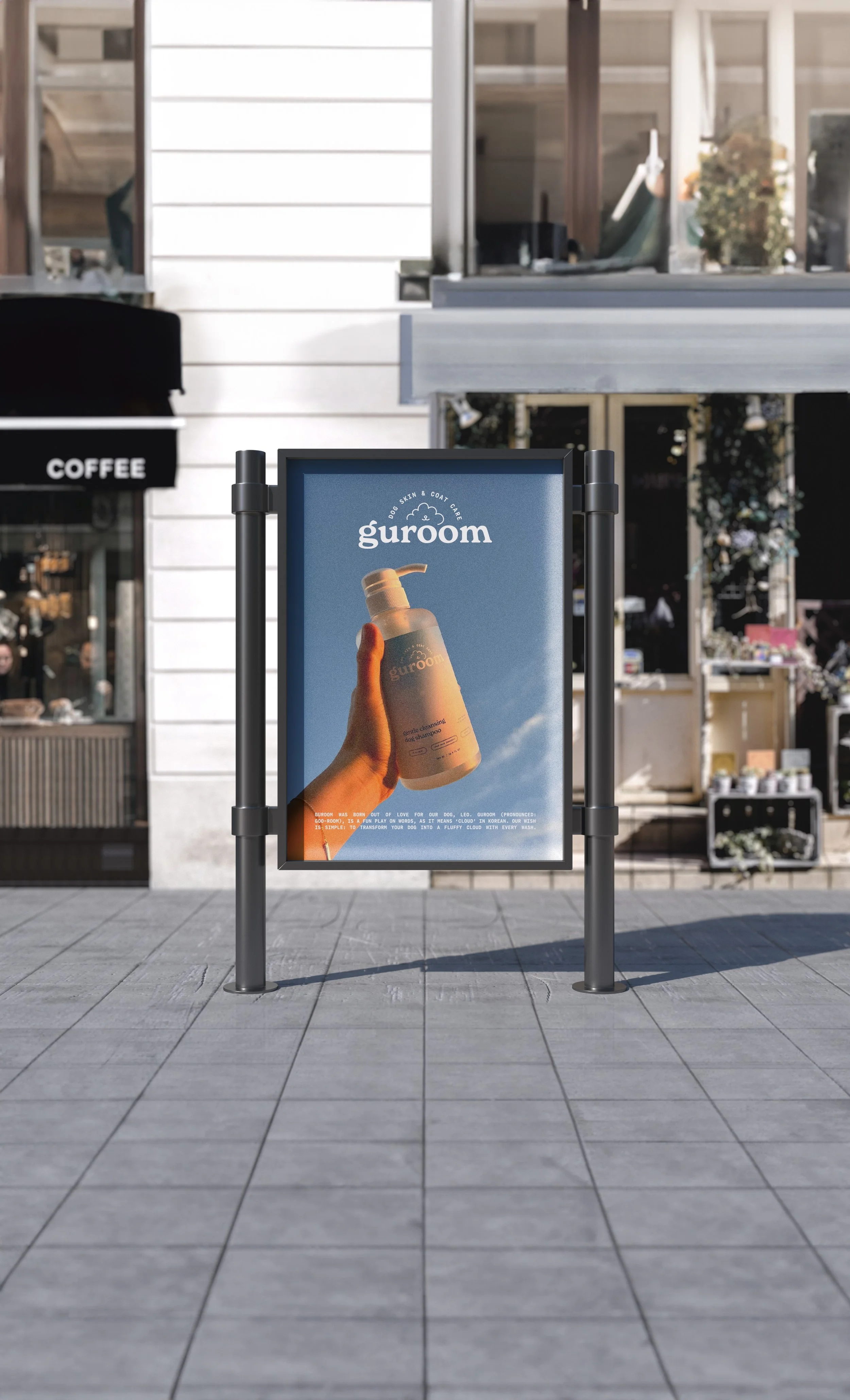 From the start, we knew Guroom had to feel as special and heartfelt as the story behind it. This wasn’t just another dog shampoo — it was a brand built out of love, intention, and a desire to give pets the same care we’d want for ourselves. So the visual identity needed to reflect that: soft, joyful, a little dreamy, and thoughtfully elevated — with just the right balance of playful and premium.