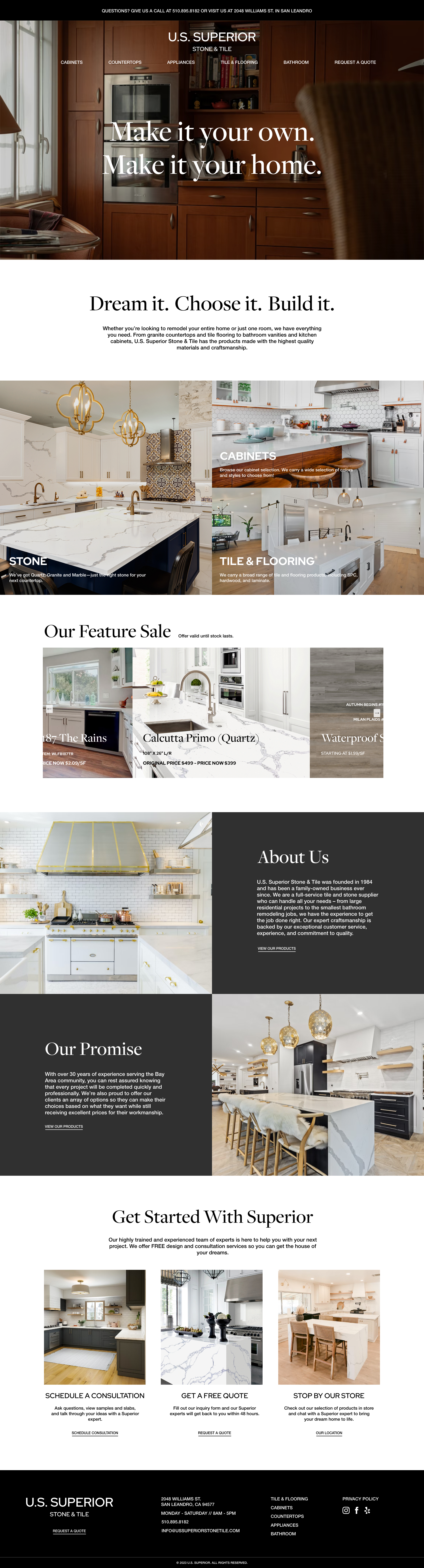 With over two decades of craftsmanship and service, U.S. Superior Stone & Tile is a trusted name in the Bay Area for high-quality home remodeling materials and services. As a family-owned business since 1999, they specialize in everything from granite countertops to tile flooring, kitchen cabinetry, and complete home renovations. Their reputation is built on expert craftsmanship, a wide product selection, and a personalized, client-first approach that has stood the test of time.